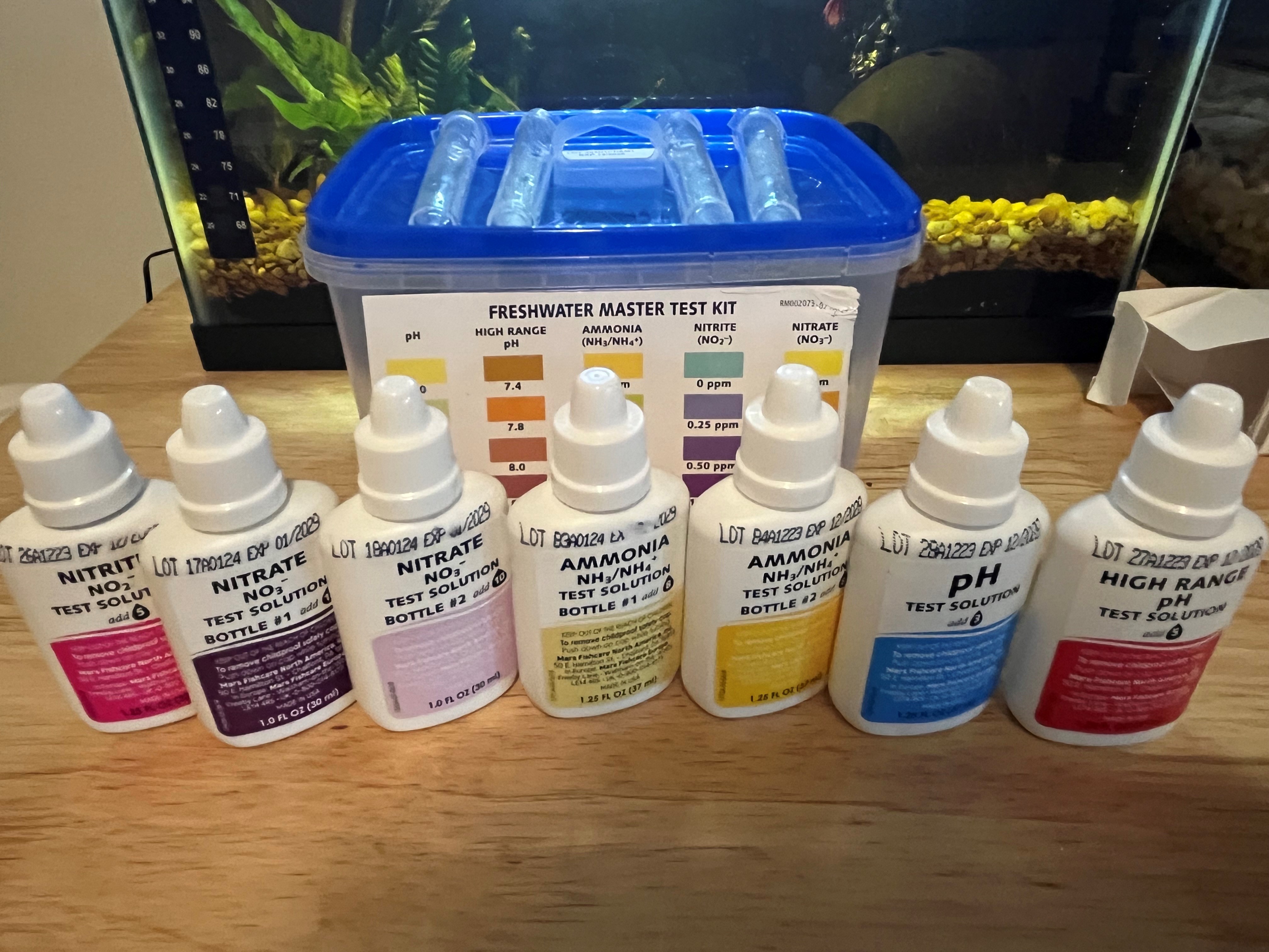 Testing is important to make sure your fish is living in good conditions. Test as often as you change your water, or if you notice sickly behaviors from your fish. Strip tests can be unreliable and hard to read, so kits that use individual liquid tests are highly recommended. An easy-to-use kit is the “API Freshwater Master Kit”, found at most Petcos and Petsmarts. This kit tests for ammonia, pH, nitrates, and nitrites. Its use is demonstrated in the video above.